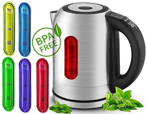 Bei diesem Wasserkocher können Sie die Temperatur durch einfach Knopdfruck selber regeln, damit Sie wissen, welche Temperatur aktuell erreicht wurde wechselt die LED Innenbeleuchtung die Farbe:
