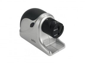 AEG MSS 5572 – Elektrischer Messer- und Scherenschleifer mit separaten Schleifschächten für Messer, Scheren und Schraubendrehern, An-/Ausschalter (Momentschalter), 60-Watt-Motor, Soft Touch Gehäuse, geräuscharmen Lauf, Kabelaufwicklung, abnehmbarem Führungskopf und gummierten Füßen.