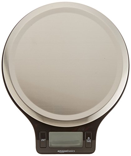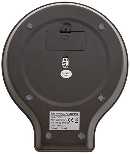 Digital kitchen scale with widescreen LCD screen;Weighs up to 11 pounds (about 5000 grams) of food;Advanced sensor technology delivers quick, accurate responses;Displays results in ounces, grams, pounds, or kilograms;Tare button subtracts container weight to zero out the scale so you only measure what you want;Measures approximately 8.7×7.2×1.4 inches (LxWxH)