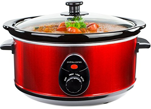 Andrew James – 3,5L Premium Schongarer In Rot – Mit Sicherheitsglas Und Entnehmbarer, Innerer Keramikschüssel – 3 Temperaturstufen – 2 Jahre Garantie
