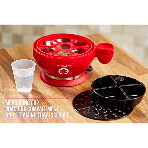 Entwickelt mit höchster Sorgfalt im Hinblick auf Sicherheit und Benutzerfreundlichkeit, besitzt der Andrew James Eierkocher außerdem einen Überhitzungsschutz, sowie einen Messbecher und einen Eierpikser.