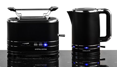Frühstück Duo Set in Mattschwarz – 3000W schnellkochender Wasserkocher und 2-Scheiben Toaster mit Brötchenaufsatz von Andrew James
