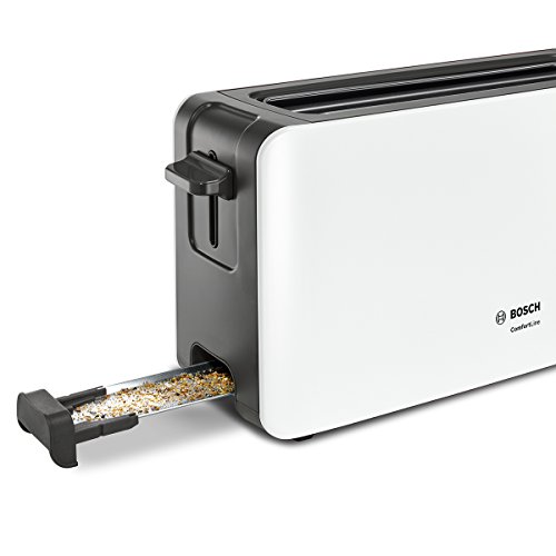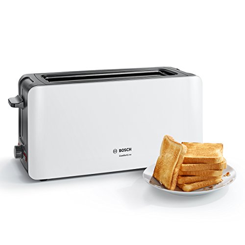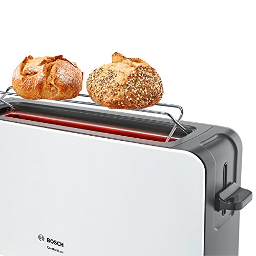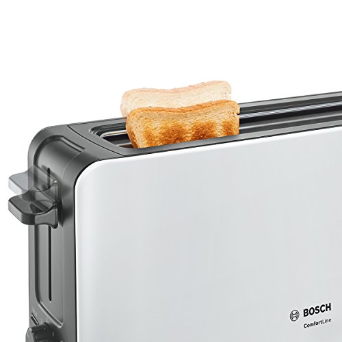 Bosch TAT6A001 Langschlitz-Toaster ComfortLine, automatische Brotzentrierung, Auftaufunktion, 1090 W, weiß / dunkelgrau