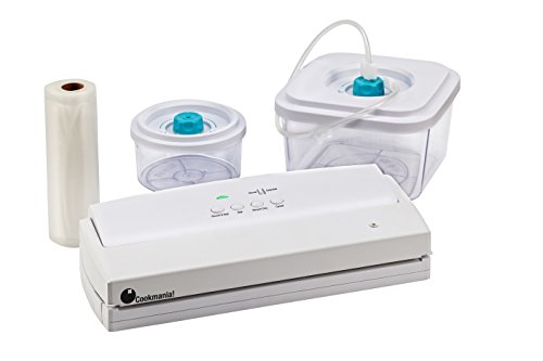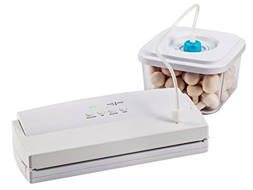 Vakuumiergerät inkl. Vakuum-Behältern und einer Rolle Vakuumierbeutel.