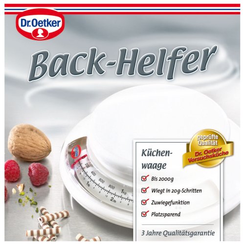 Wiegen sie sich in Sicherheit. Denn die Dr. Oetker Backwage analog, arbeitet präzise, clever und zuverlässig. Mit dieser Küchenhilfe gelingt ihnen jedes Gericht mit Leichtigkeit. , 2 kg Tragkraft , 20 g-Teilung , Mit mechanischer Zuwiegefunktion , Platzsparend verstaubar , Länge: 18,5 cm , Breite: 17,5 cm , Höhe: 6,4 cm , Lieferumfang:1 Dr. Oetker Backwaage analog, Küchenwaage, 1531