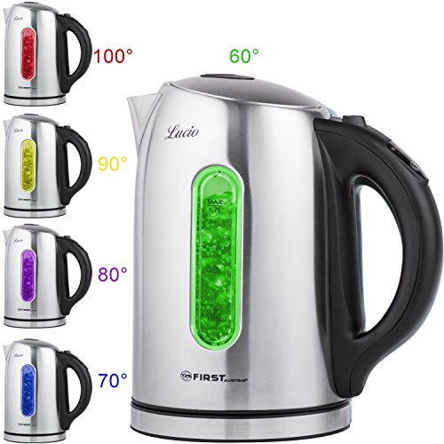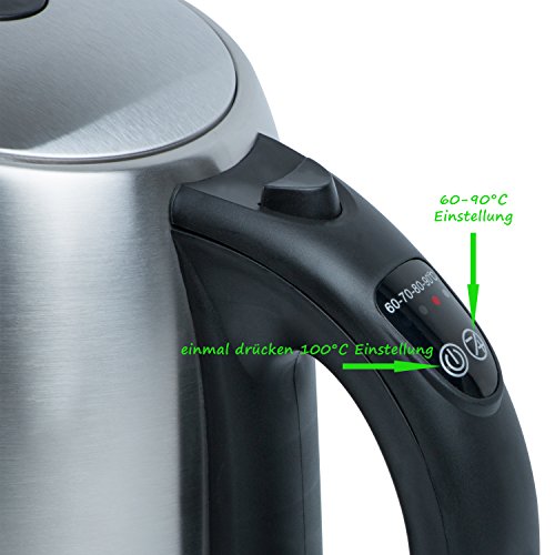 2200 Watt Wasserkocher ohne Signalton mit 1,7 Liter Füllmenge| Temperatureinstellung 60, 70, 80, 90 und 100 Grad