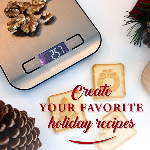 Ein Universalgenie wie die Page Profi muss man in den höchsten Tönen loben. Diese Etekcity digitale Küchenwaage ist aus Edelstahl. Das Material bietet eine gehobene, anspruchsvolle Ästhetik, die eine große Auswahl an Küchendesigns ergänzt. Sie nimmt es mit leichten, aber auch mit schweren Stücken auf und misst dabei stets grammgenau. Sanft berührt, lässt sie sich mühelos über die patentierten Bedienfelder dirigieren!