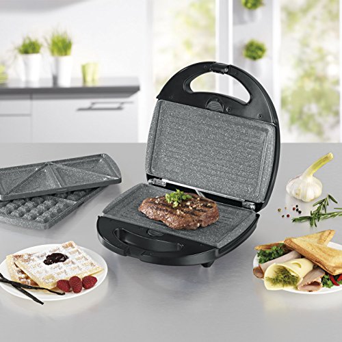 GOURMETmaxx 00925 Tischgrill Granit-Optik 700 W ( Wechselbare Grillplatten für verschiedenes Grillgut, Waffeln, Sandwich uvm.)