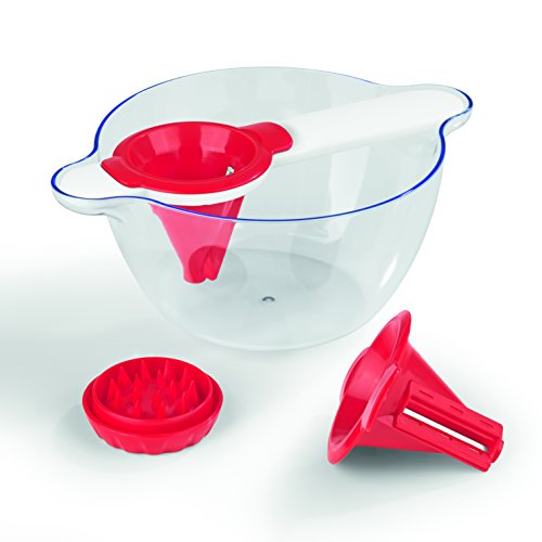 Spülmaschinengeeignet. 5-teilig: Schüssel, Klingenhalter, 2 Klingen, Fingerschutz. Maße: ca. 24 x 18 x 10,5 cm. Material: PS, ABS, Edelstahl.