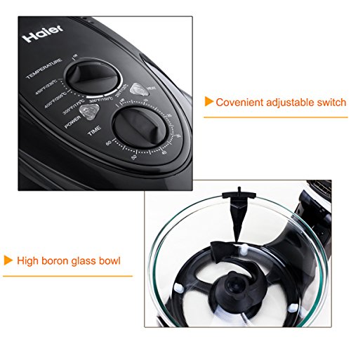 Haier Air Fryer ist ein fusioniertes kompaktes Gerät mit Friteuse, Pfanne, Toaster, Backofen, und heißen Grill. Es wird ermöglichen, in einer Gesundheit, umweltfreundliche und schnelle Weise, Ihre Lieblings-Mahlzeiten und Snacks vorzubereiten. Es lässt Sie weit von fettreiche Nahrung. Durch zirkulierende Luft-Technologie liefert es eine geschmackvolle und gesundes Essen, und die Lebensmittel natürliche Aromen zu verbessern und die begehrten “außen knusprig und feucht im Inneren” Effekt zu erzeugen.