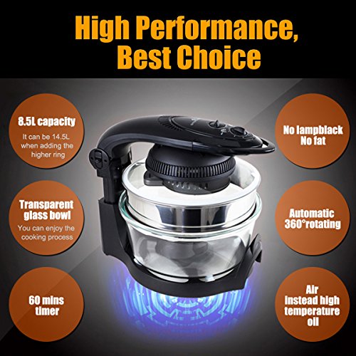 Mit dem bulit-in Timer können Sie ganz einfach die Garzeit und Temperatur einstellen. Mit dem Reverse-Rührgerät, können Sie die Nahrung leicht kippen, um jeder Teil der Nahrung gleichmäßig zu braten. Keine Notwendigkeit, den Ofen zu öffnen, die Hände zu riskieren, und das Gesicht des scheidenden heiße Luft verbrannt.