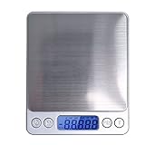 Anzeigegenauigkeit: von 002g – 200g – 0.1g Schritte / von 200g – 500g – 0.5g Schritte / von 500g – 02 kg – 1g Schritte