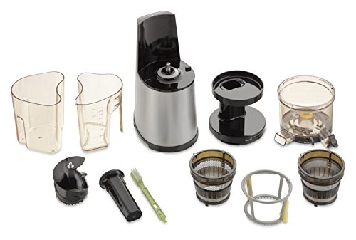 Im Lieferumfang 2 Siebeinsätze (Saft/Smoothie), Reinigungsbürsten, Trester- und Saftbehälter, Rezeptbuch(eng) enthalten.