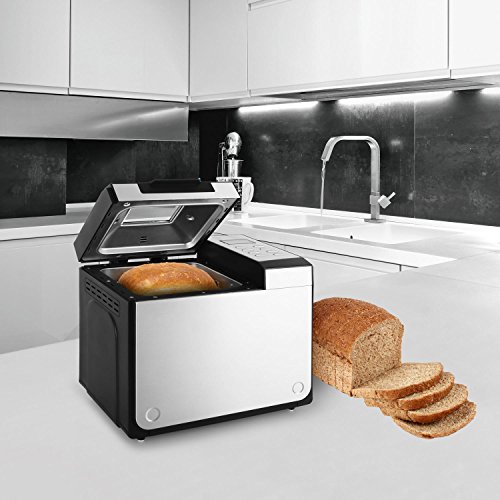 Dank seines ordentlichen Fassungsvermögens lassen sich auch größere Brote bis zu 1000 Gramm backen, während der einstellbare Bräunungsgrad eine Kruste in der gewünschten Färbung ermöglicht.