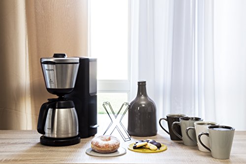 Die bruchsichere Thermo-Kanne aus Edelstahl hält den Kaffee länger warm.