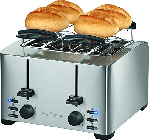 Das Gerät ermöglicht ein gleichzeitiges Toasten und Aufbacken von vier Scheiben Toast und zwei Brötchen. Dies verkürzt die Wartezeit erheblich und so muss auch in größeren Familien in Zukunft niemand mehr hungern. Zudem ist dieser Toaster auch für amerikanische Toastscheiben geeignet.