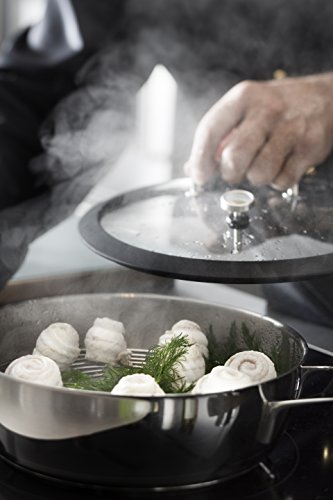 Der Edelstahltopf, mit seinem dichtschließenden Deckel aus bruchsicherem Glas, eignet sich hervorragend um Fleisch, Fisch, Geflügel und Gemüse schonend und ohne Nährstoffverlust zu garen oder zu schmoren. Das in den Deckel integrierte Thermometer ermöglicht die Kontrolle des Garprozesses, lässt sich aber auch ganz einfach herausnehmen. Ein Ablagerost mit Silikonauflage verhindert, dass kleines Gargut durch den Rost fällt und am Topfboden anhaftet.