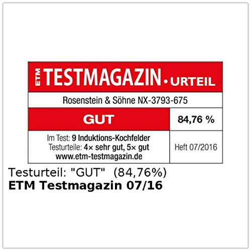 Direkt einstellbare Leistung (200 – 2.000 W) oder Temperatur (60 – 200 °C) • Einfaches Reinigen: kein Einbrennen auf der Kochfläche • Leistungsaufnahme: bis 2.000 Watt • Induktions-Kochfeld inklusive deutscher Anleitung