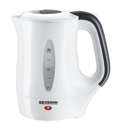 Severin WK 3644 Reise-Wasserkocher / 650 Watt / Inhalt 500 ml / inklusive 2 Kunststofftassen mit Löffeln / weiß-dunkelgrau