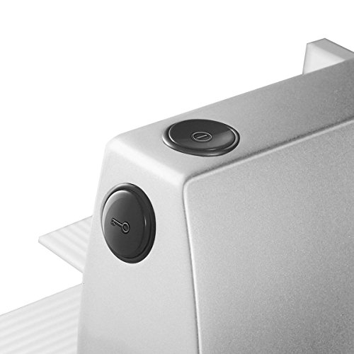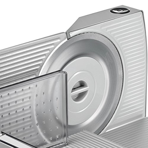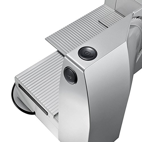 Großer Metallschlitten für leichtes Schneiden auch von größerem Schneidgut.