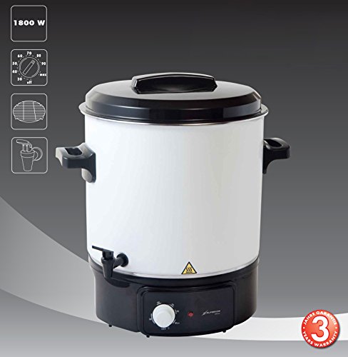 der Einkocher mit einer sehr großen Nutzfläche von ca. 18 Litern, der Party-Kochautomat hat einen geschlossenen Boden, welcher das Zubereiten von Speise ermöglicht, für erhöhte Sicherheit wurde der Stecker des Kabels geprüft, der Einweckautomat ist stromgebunden und daher fast überall einsetzbar