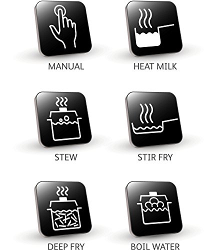 Praktische Induktionskochplatte mit sechs voreingestellten Kochprogrammen: Heiße Milch, Köcheln, Braten, Frittieren, Wasser kochen & Manuell
