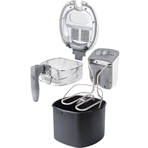 Stufenloser Temperaturregler bis 190°C | Absenkbarer Frittier Korb mit Klappgriff | Heizelement, Korb und Deckel komplett herausnehmbar, leichte Reinigung