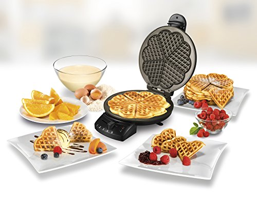 Der Waffelautomat Diamant von UNOLD® schmückt jeden Kaffeetisch und zaubert jederzeit köstliche Herzwaffeln. Das Gehäuse des WAFFELAUTOMAT Diamant ist in zeitlos modernem Edelstahl gehalten und ist kinderleicht zu bedienen. Einfach das Gerät mit Strom versorgen, kurz warten, bis die Backampel grün leuchtet, den Teig auf die Waffelplatte gießen, und schon nach wenigen Minuten sind die ersten Waffeln fertig. Mit dem stufenlos einstellbaren Temperaturregler wird der Bräunungsgrad kontrolliert und jeder erhält seine Waffel so, wie er sie gerne hat. Dank einer Antihaftbeschichtung bleibt nichts an den Waffelplatten hängen, deshalb lässt sich das Gerät nach dem Gebrauch auch einfach reinigen. Da freut man sich schon auf den nächsten Kaffeetisch. Anregungen und Rezeptvorschläge werden in der Bedienungsanleitung gegeben.