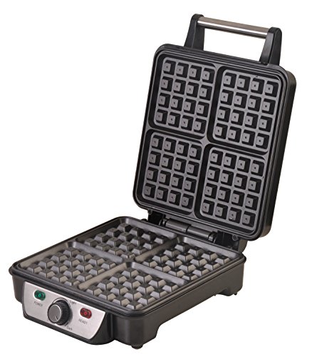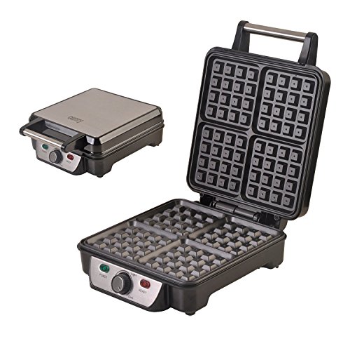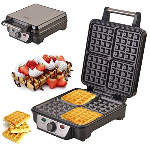 XXL Waffeleisen Waffelautomat für 4 extradicke belgische Waffeln Edelstahl Waffelmaker Thermostat (Bränungsregler)