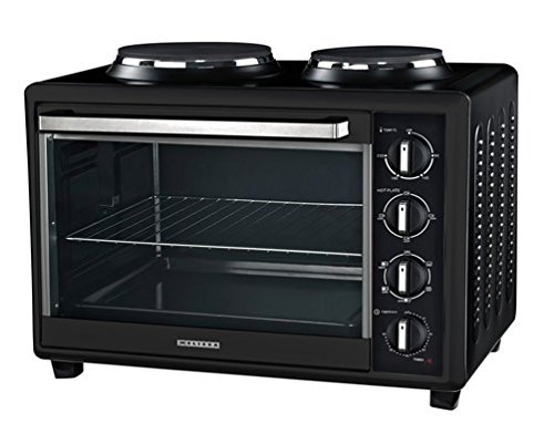 Selbst zwei Grillhähnchen finden in dem Backofen problemlos Platz und werden bei einer Leistung von 90° – 230° (Ober- und Unterhitze) herrlich knusprig. Und mithilfe der verschiedenen Heizfunktionen gelingt Ihnen jedes Gericht oder Backwerk. Überdies verfügt der Backofen über ein Backblech und ein Grillgitter.