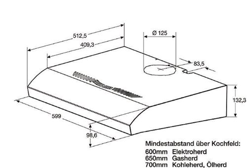- Durchmesser des Abluftstutzens (mm): 125