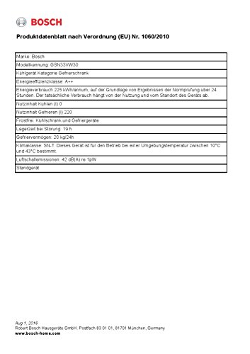 a. Gefrieren: Energieeffizienzklasse: A++ auf einer Skala von A+++ (höchste Effizienz) bis D (geringste Effizienz)