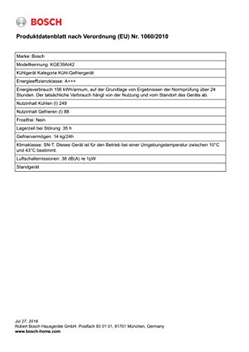 b. Kühlen / Gefrieren: jährl. Energieverbrauch (Aec): 156,00 kWh/Jahr
