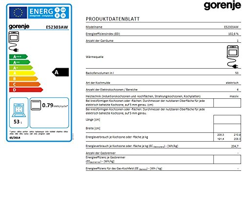 c. Backofen: Energieeffizienzklasse: A auf einer Skala von A+++ (höchste Effizienz) bis D (geringste Effizienz)