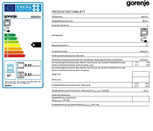 Gorenje Herd-Kochfeld-Kombination / A / 65 Liter /Heißluft mit Unterhitze (Pizzastufe)