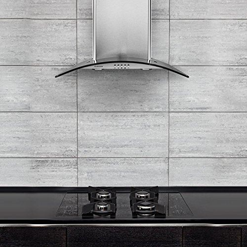 Mit ihrer Breite von 90cm passt die Dunstabzugshaube auch über ausschweifende Kochflächen. Dabei benötigt die Ablufthaube in der Tiefe kum Platz, ist also für schmale Küchen geeignet und ermöglicht einen Blick von oben in die Kochtöpfe. Die Abzugshaube wird an der Wand über der Kochstelle montiert (keine Deckenmontage), die notwendige Halterung liegt dem Artikel bei.