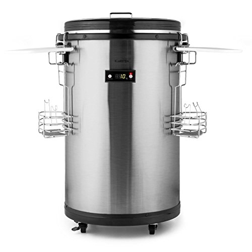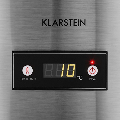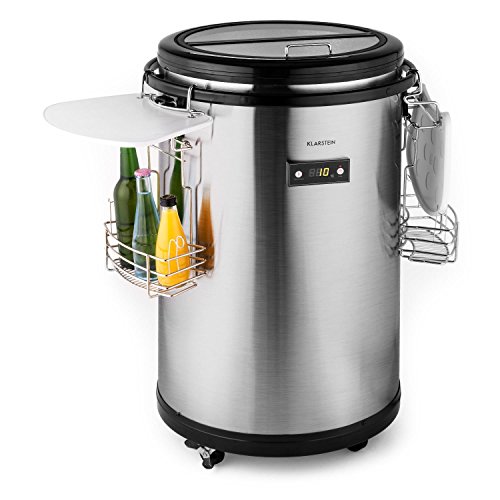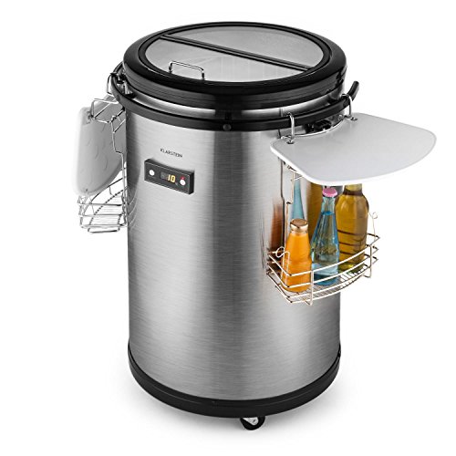 Klarstein Mr. Barbot Kühlbox Getränkefass Getränkekühlschrank (50 Liter, Bodenrollen, energiesparend, digitale Temperaturanzeige, Edelstahl) silber