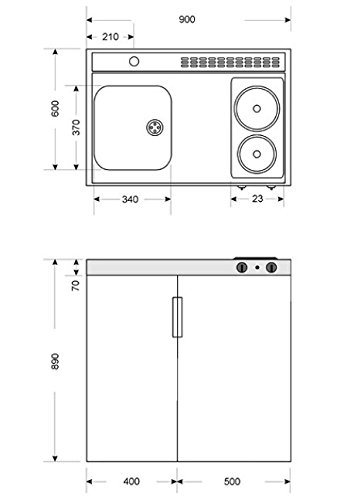 Masse der Küche 900 x 895 x 620 mm (B / H / T)