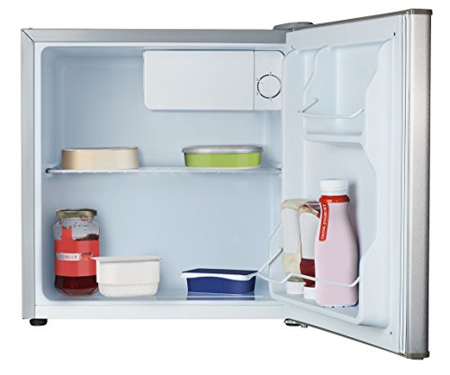 Praktischer Mini-Kühlschrank mit utzinhalt: 46 Liter, wovon der Kühlteil 41 Liter und der Gefrierteil 5 Liter umfasst.