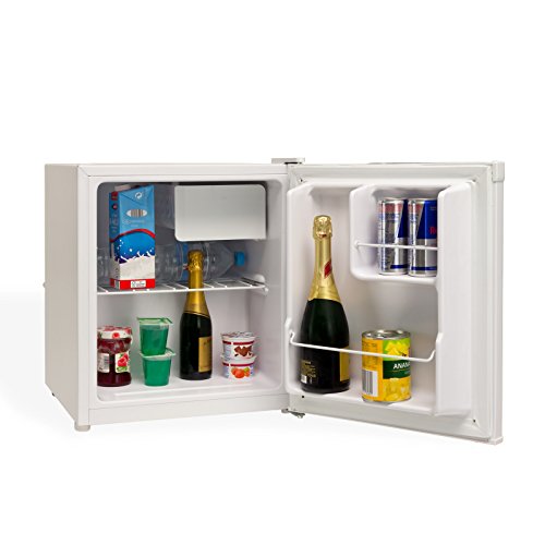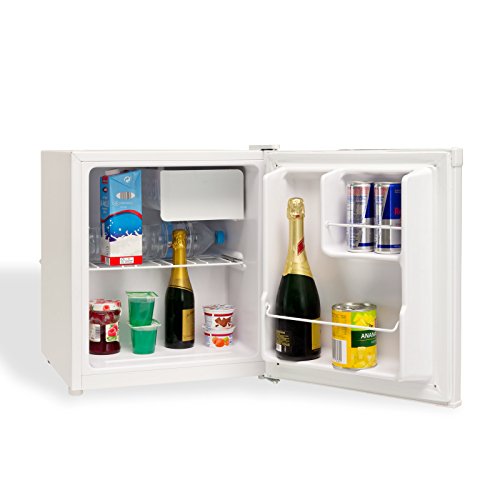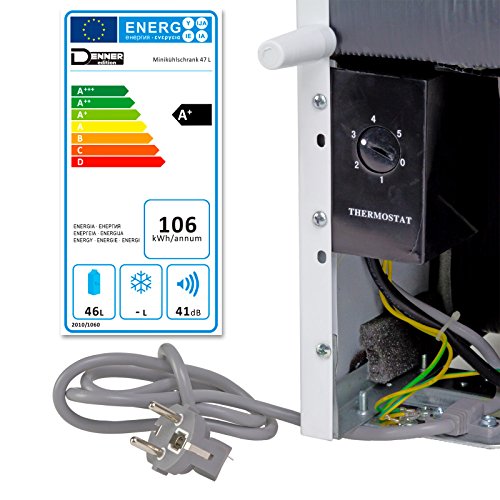 Wie hält man Lebensmittel möglichst lange frisch und spart dazu noch Energie? Natürlich mit dem DEMA Mini Kühlschrank 47L 220-240 Volt! Klasse Kühlschrank mit kleinen Maßen für hohe Flexibilität. Trotz kleiner Maße müssen Sie dank dem großen Kühlfach nicht auf Platz verzichten. Egal ob im Büro, in der Firmen-internen Küche oder einfach der eigenen Küche, dieser Kühlschrank erfüllt immer treu seinen Dienst. Durch die herausnehmbare Türdichtung ist selbst eine gründliche Reinigung ein Klacks. Mit einem geringen Stromverbrauch tun Sie auch sich und ihrer Umwelt einen Gefallen durch das Sparen einer Menge Strom. Weniger Energieverbrauch bei voller Leistung – dank dem DEMA Mini Kühlschrank 47L 220-240 Volt! Ausstattung: • Sparsam • Kompakte Maße • Effektive Kühlkompressor-Technik wie bei den “Großen” (kein stromfressendes Peltier-System) • Herausnehmbarer Zwischenrost • Fasst bis zu 6! 1,5 Liter-Flaschen • Kühlraum mit integriertem Eisfach • Regulierbarer Thermostat an der Rückseite • Herausnehmbare Türdichtung für bessere und hygienischere Reinigung • Türanschlag wechselbar links/rechts • Verstellbare Füße für sicheren Stand • Auch als Unterbaukühlschrank / Einbaukühlschrank verwendbar (benötigte Rückwand-Abstandshalter sind im Lieferumfang enthalten – Aufstellhinweise sind zu beachten) Bitte beachten: Abgebildeter Inhalt ist nicht im Lieferumfang enthalten. Technische Daten: • Nutzinhalt: 47 Liter • Eisfach: 4 Liter • Energieeffizienzklasse1): A+ (auf einer Skala von A+++ (niedriger Verbrauch) bis G (hoher Verbrauch) • Energieverbrauch in 24 h: 0,30 kWh • Repräsentativer Jahresverbrauch1) in kWh: 110 KW/h • Klimaklasse: N/ST • Kühlmittel: R600a • Gefrierleistung: -3°C • Geräuschpegel: 41 dB(A) • Betrieb an 230 Volt / 50 Hz • Außenabmessungen BxTxH: 44×47,5×50,5 cm • Gewicht: 13,7 kg 1) Werte ermittelt nach Norm EN 153