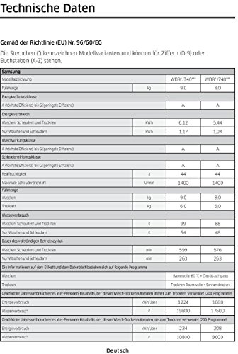 Samsung WD90J7400GW/EG Waschtrockner Weiß EEK: A Hochleistung leicht gemacht. 6 kg Nonstop-Waschen und -Trocknen.Ihre Wahl  Prefer Mode  besonders leise, schnell oder energiesparend waschen. AIRWASH  Samsung Trockenreinigung für zuhause.Crystal Blue Tür┢  Qualität, Eleganz & Komfort dank massivem Doppelschanier, erhöhtem Bullauge, 36 cm Durchmesser & besonderem Design.    9 kg Waschen + 6 kg Trocknen    Energieeffizienzklasse A    Schleudereffizienzklasse A    1.400 Touren    SmartCheck  Lösung per AppRuf