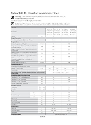 WaschvollautomatFrontlader1400 U/min8 kg NennkapazitätEnergieeffizienzklasse: A+++