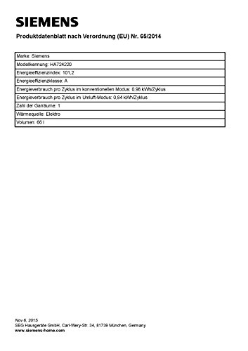 Energieverbrauch Um-/Heißluft: 0,84 kWh