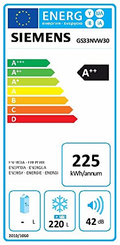 a. Gefrieren: Energieeffizienzklasse: A++ auf einer Skala von A+++ (höchste Effizienz) bis D (geringste Effizienz)