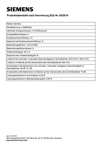 c. Dunsthaube: jährl. Energieverbrauch (Aec): 31,90 kWh/Jahr