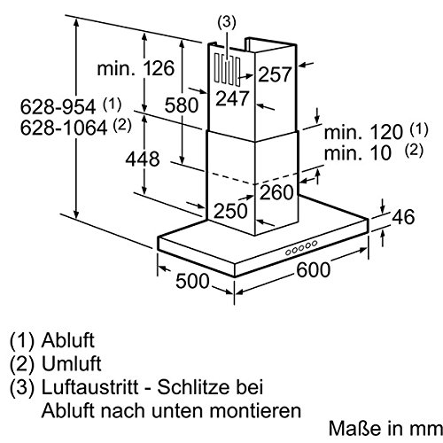 l. Luftstrom im Betrieb auf der Intensivstufe/ Schnelllaufstufe: 600,00 m³/h