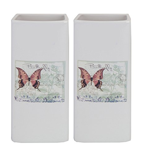 2er Set K7plus® Luftbefeuchter aus Keramik in creme – weiss – Motiv: Butterfly