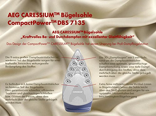 Optimale Gleitfähigkeit und Dampfverteilung dank der Caressium Bügelsohle