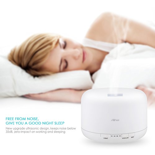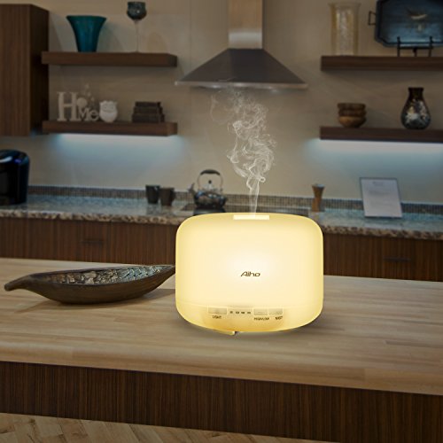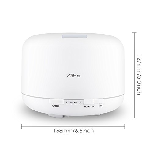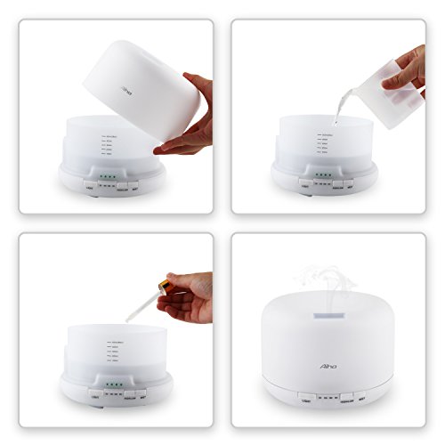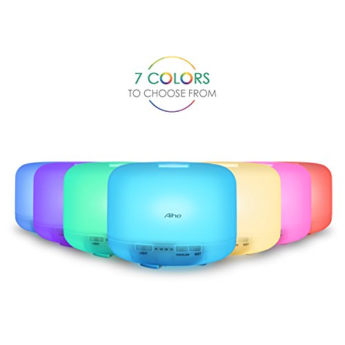Aroma Diffuser, Aiho Aroma Diffusor Aromatherapie 500ml Ätherische Öl Ultraschall Luftbefeuchter Humidifier mit 7 LED Farbwechsel Licht, Nebel Modus Verstellung, Wasserlos Auto off, sicher und leise Duftzerstäuber perfekt für Büro Spa Schlafzimmer Babies Kinder Haus Yoga (AD-P1 )