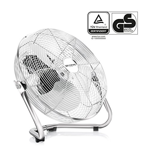 Der Brandson 35cm Bodenventilator im eleganten Chrom-Look (Retro/Turbinen-Stil) sorgt für einen